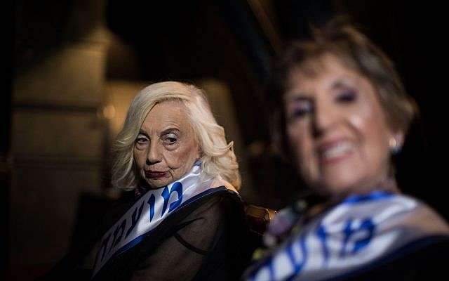 Tova Ringer, sobreviviente del Holocausto de 93 años, gana el concurso de belleza «Miss Holocaust Survivor» en la ciudad de Haifa, en el norte de Israel, el 14 de octubre de 2018. (Hadas Parush / Flash 90)