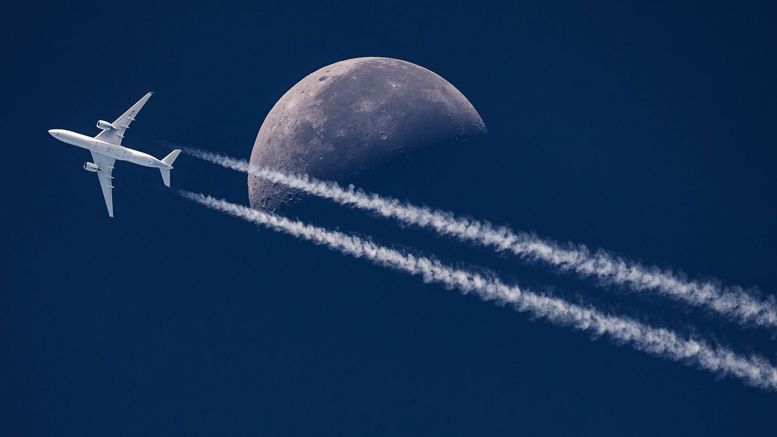 Dice que le encantaría tomar una foto de un Boeing 747 volando frente a la Luna y pasando sobre Brisbane con las estelas del arco iris.
