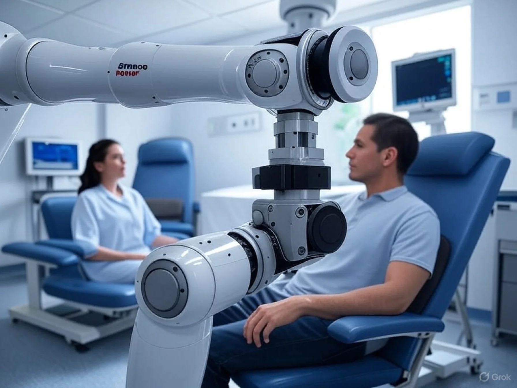 El robot Armeo Power, implementado en el Hospital Loewenstein, mejora un 35% la fuerza en pacientes post-ictus desde 2018.
