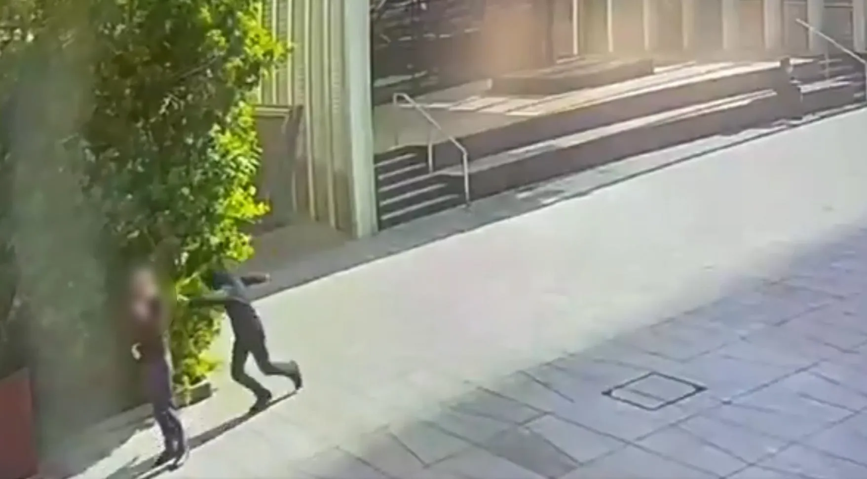 Las cámaras de seguridad captaron el momento del apuñalamiento. En las imágenes se ve a un hombre con sudadera y pantalones negros sacar un cuchillo y lanzarse por la espalda sobre una víctima desprevenida.